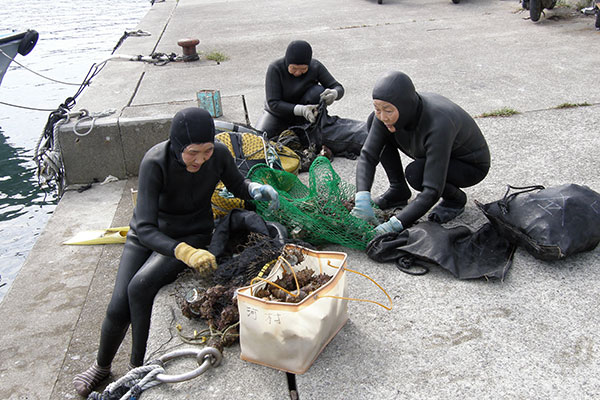 錦絵に描かれた海女 あわび採りの風景